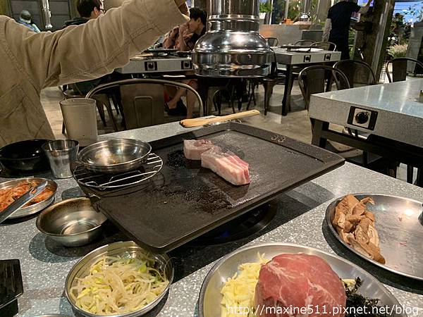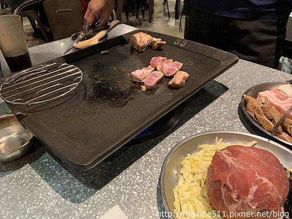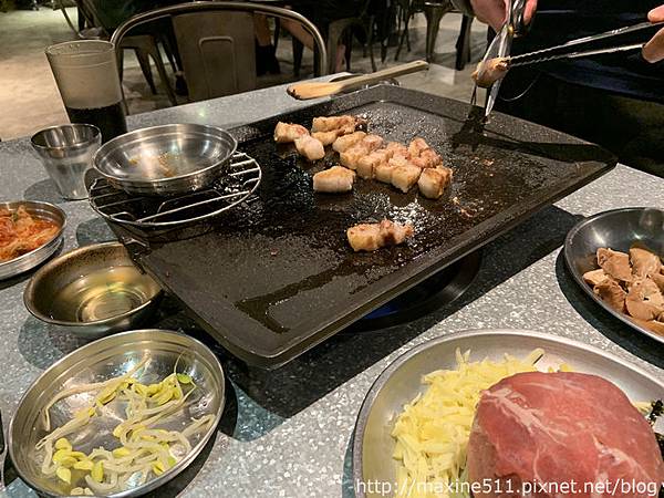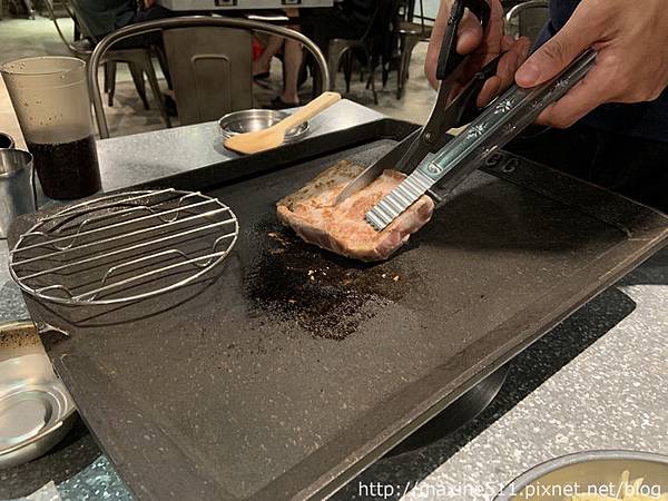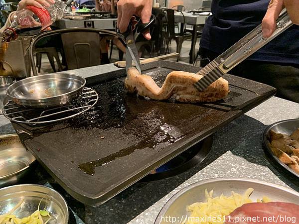 韓式烤肉的肉都比較厚,所以店員會先將肉片表面烤熟後用剪刀剪成小塊狀,再烤一下才會烤的均勻。