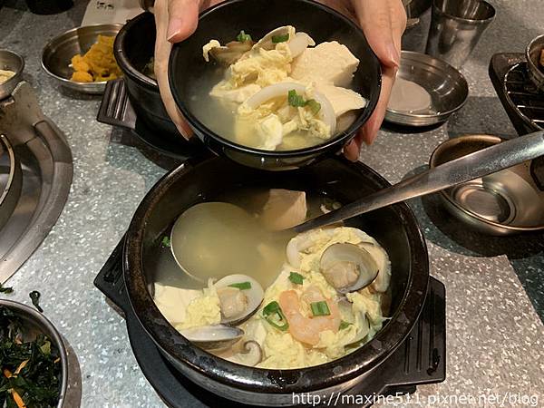 等待店員烤肉的時候繼續上菜,湯鍋的部分我們選擇豆腐煲跟大醬湯。