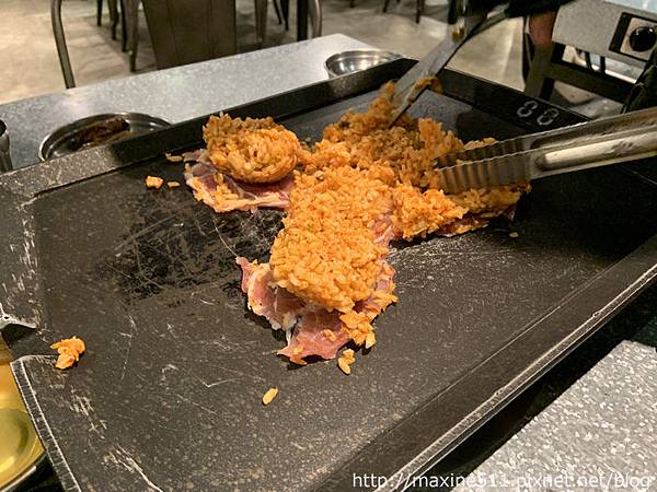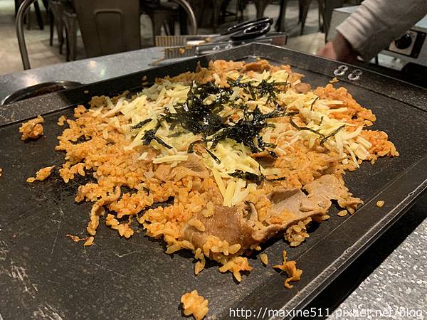 灑上起司條跟海苔,確認一下把飯烤的微微焦之後關火。烤飯的口感跟石鍋拌飯很像,但是味道沒那麼重,搭配起司一起入口,真的是完美的ending!