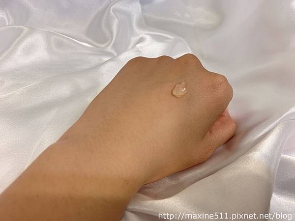 日間修護精華凝露果凍般的質地在推開的時候非常滑順好吸收,當作妝前保養使用可以增加肌膚的保濕與彈潤,但因為質地的關係,建議等到完全吸收在上其他產品才不會起屑。
