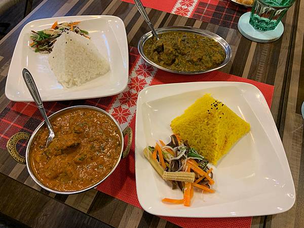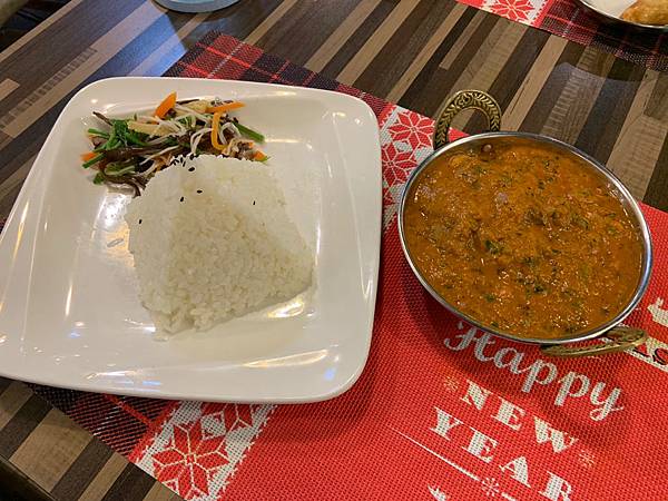 兩個咖哩我們分別點「菠菜咖哩羊肉」跟「香料咖哩牛肉」,點微辣。先說ㄧ下咖哩的辣度,雖然點微辣,但是辣度會慢慢上來,有一種越吃越辣的感覺,很過癮!