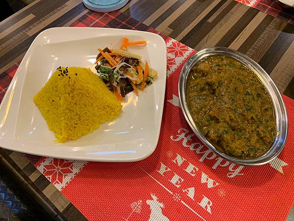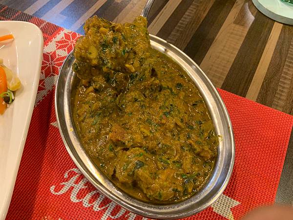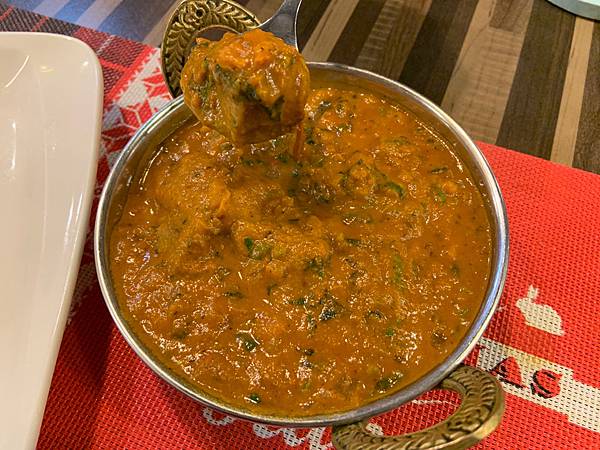 該怎麼說呢!吃咖哩就一定要配羊肉才夠味啊~一口白飯配羊肉咖哩真的太讚了,菠菜咖哩本身的味道算是口味比較偏清淡的,但是加上味道較濃郁的羊肉之後,口感大大提身!
