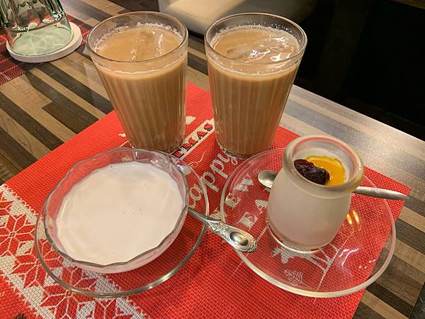 套餐會附飲品跟甜點,甜點是芋頭西米露跟奶酪,吃了可以幫助去去嘴巴的咖哩味。飲品的部份我們點印度奶茶,這個我就比較喝不太習慣了,因為香料味太重了,有一股濃濃的肉桂味我不喜歡....不過我妹倒是很愛就是了(笑)。
