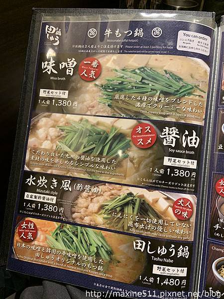「田しゅうもつ鍋」官網: https://www.motsunabe-tashu.com/menu
