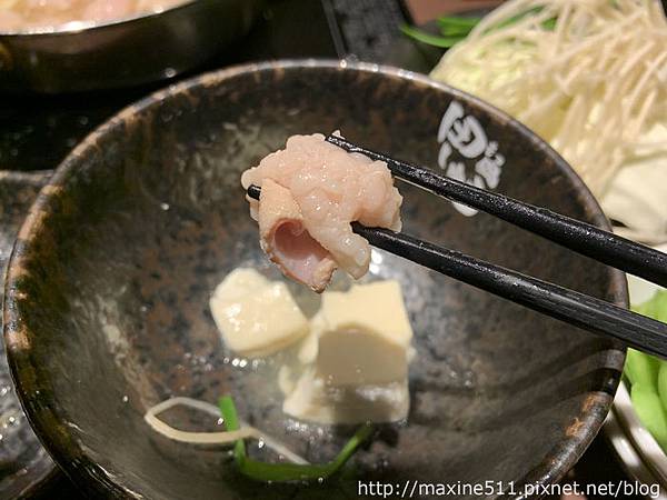 近拍一下牛腸,可以等到青菜熟的時候,腸子也入為了再吃。先吃一口原味的肥腸,如果覺得單吃太油膩,桌邊都有附柚子醬油跟七味粉,搭著醬油吃可以減去一些油膩感。'不過這間的肥腸我覺得很棒了,不是一整塊都是油讓人難以下嚥,腸子本身雖然有嚼勁但是不會太難咀嚼。第一次嘗試もつ鍋的人,可以先慢慢咀嚼,如果覺得油膩感太重的話,換吃青菜或喝一口飲料緩一緩。不過我自己覺得這間もつ鍋真的很好吃,中間雖然是沾著醬油吃腸子,但是還是把整鍋料吃完8成左右。