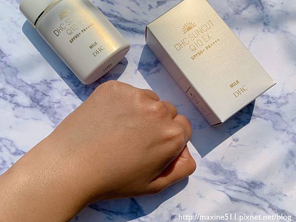 在手上推開其實真的沒有感覺是在擦防曬,因為質地跟乳液很像,沒有黏膩或不適感。