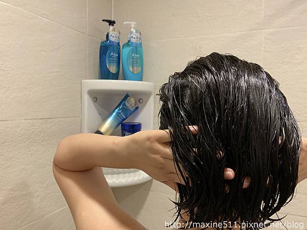我使用護髮乳的方式是先在髮尾上抹勻,手上剩餘的護髮乳再用梳頭髮的方式,從頭頂髮根開始梳到髮尾,重覆幾次後等待2~3分鐘時間,再用清水沖洗乾淨。
