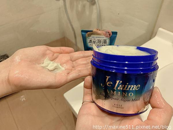 第三步驟可以從髮膜或是海藻深層修護髮膜之間二選一使用即可,使用前建議先使用護髮乳,效果會比較好。水潤滑順髮膜擠出來是白色,牙膏型包裝230克。