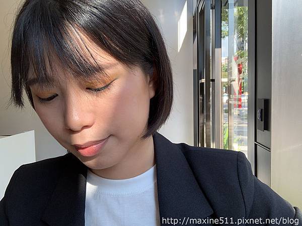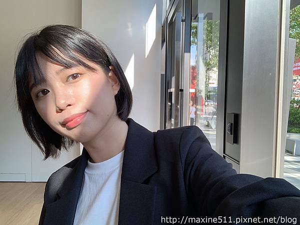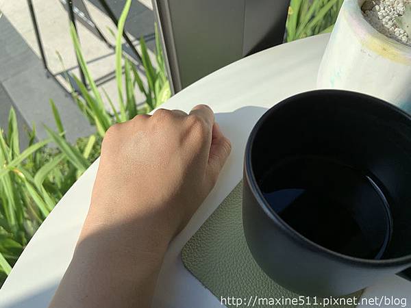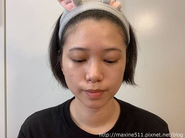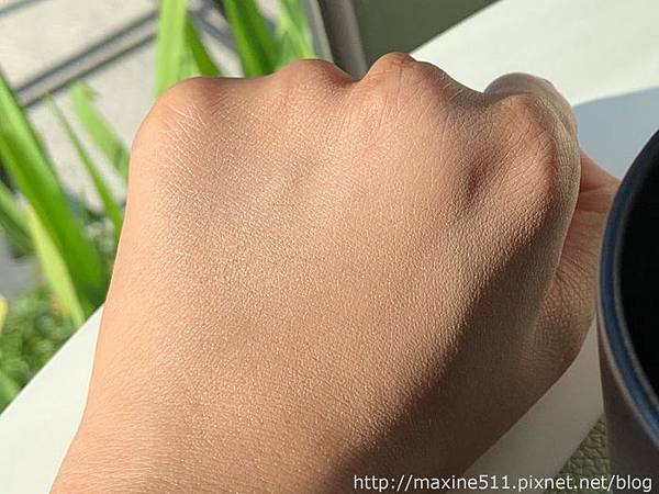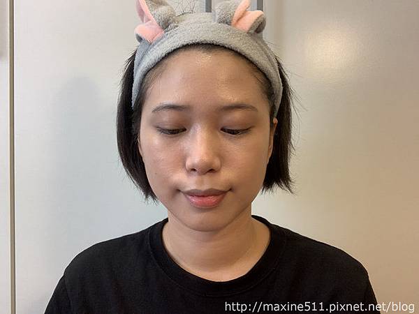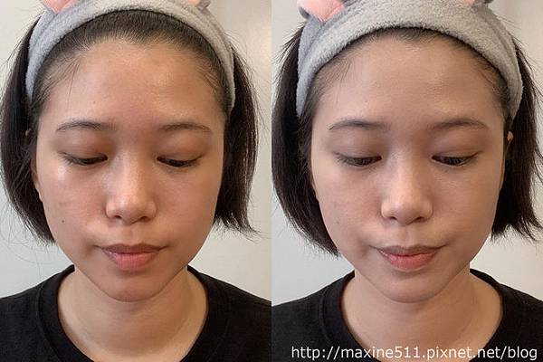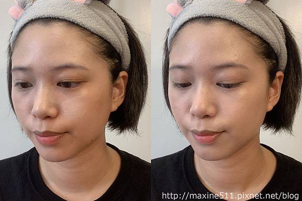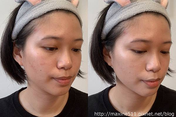 我覺得整體妝效最好看的時候是大概完妝後2~3小時,臉部微微出油,整個妝感呈現出微霧面光澤感,這樣的妝感好適合在太陽底下拍照,而且乾肌出油量不多,不會變成滿面油光,是乾肌可以嘗試的夏日底妝。