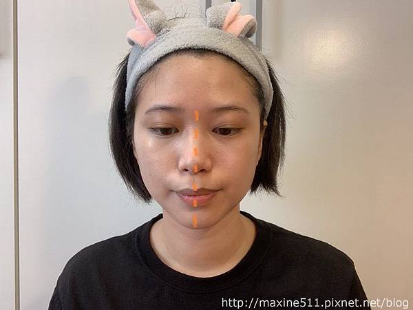 除了黑眼圈以外,我的肌膚瑕疵有鼻翼兩側泛紅跟血絲、額頭的痘疤,跟去年我人生第一次爆痘的痘印跟痘疤。我自己最常長痘痘的地方就是額頭,只要留瀏海,長痘痘的狀況就會頻繁一點,但也不會很嚴重。