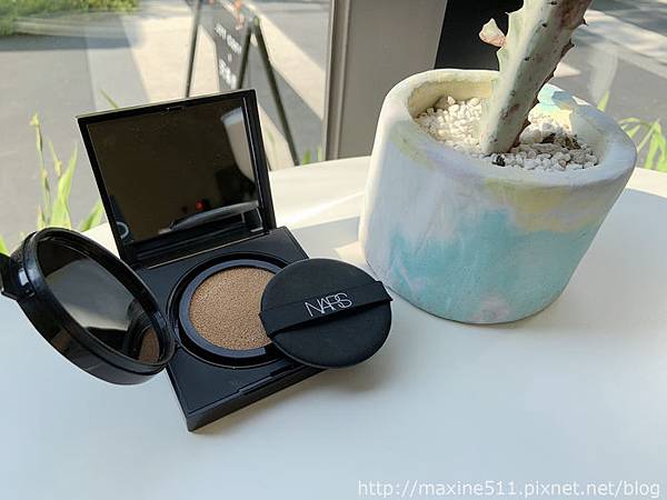 我夏季跟冬季的妝感好像都差不多,不過夏季的底妝還是希望可以更持久一點,因為出汗出油量肯定會高上許多,如果出大太陽也很怕臉部溫度變高直接把妝溶掉 (會不會太誇妝~) 。我覺得有遮瑕力又持妝的產品,通常比較乾,加上又有控油的功效,會呈現完全霧面的妝感,這一點我也不喜歡。沒有想到這次使用NARS的超持久亮顏氣墊粉餅之後,覺得是一款符合我需求的氣墊粉餅。