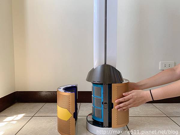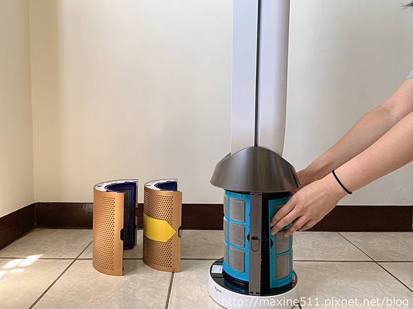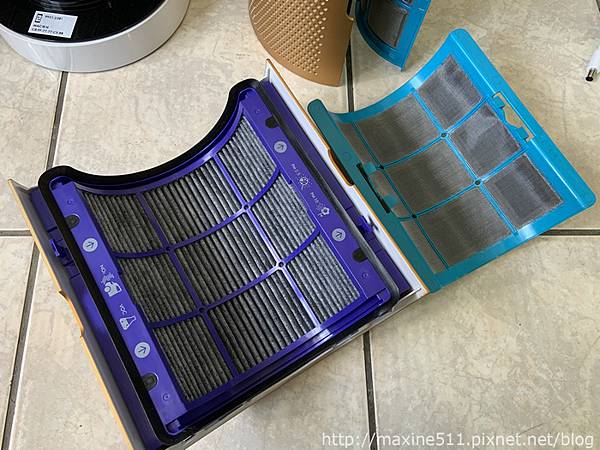 安裝TP06的步驟非常簡單,先將藍色濾網裝上後,再裝上紫色濾網就可以了。產品設計上很貼心,直接將濾網扣上就可以了,不用使用到其他工具鎖來鎖去的。