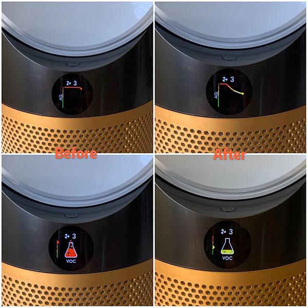 再來是淨化空氣功能,看到TP06顯示測試前後的數值覺得有甲醛分解科技真的很重要,夏天開冷氣會關門窗,甲醛、汙染源更不容易揮發,如果只用一般空氣清淨機或傳統電風扇吹,汙染源會一直在室內循環,所以選對產品真的很重要,因為有關身體健康的事情可是一點都不能馬虎的。身邊許多朋友都是Dyson產品的使用者,Dyson的吹風機、吸塵器跟空氣清淨機都是朋友們推薦的好物。自己使用過後也會想推薦給身邊的朋友,除了外型時尚,也是因為結合風扇跟空氣清淨機二合一的設計不占空間,淨化空氣效果也讓人放心,還可以使用Dyson的專屬APP「Dyson Link」用手機查看空氣品質,還可以用手機直接遙控機器呢!