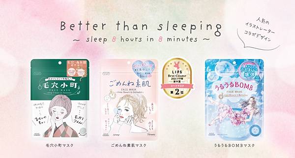 「速攻集中安心面膜」是2021下半年度日本LIPS最佳美妝面膜新品賞第二名,封面是跟插畫家「Nappyさん」(https://www.instagram.com/nappyyu/)合作,Nappyさん跟許多雜誌與化妝品合作過,以可愛俏皮的女性插畫居多,也是這一系列我最喜歡的封面插畫!