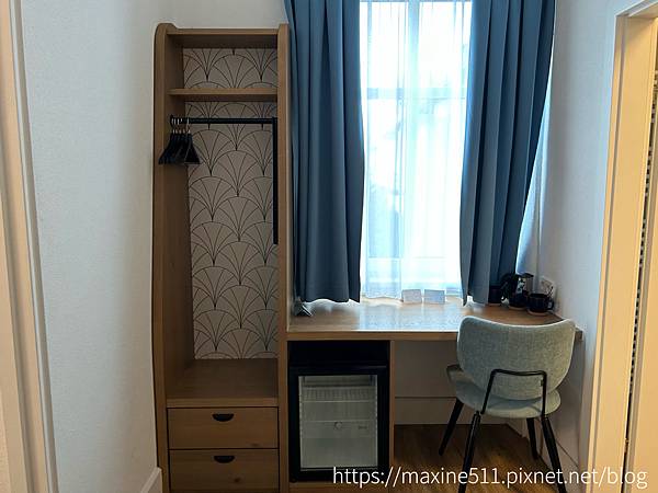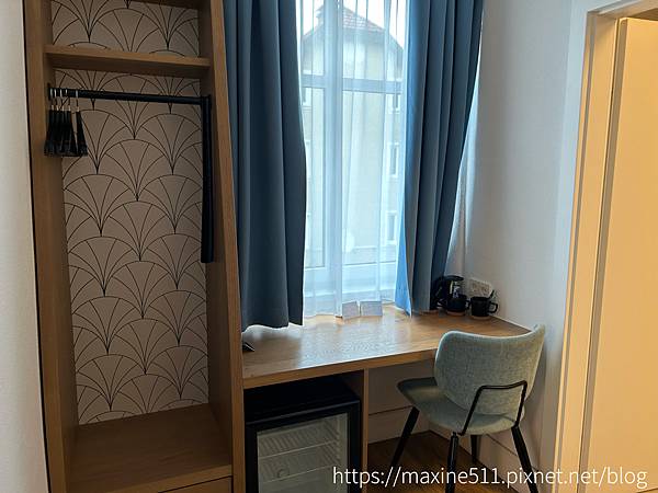 房間有提供衣架、熱水壺、杯子跟冰箱。