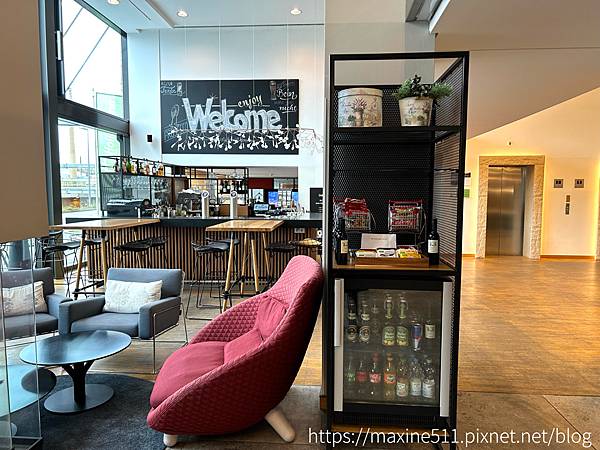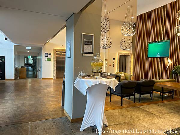Holiday Inn 如果房間有提早打掃或是安排的房間前一晚沒有客人入住,好像都會讓旅客提早入住,不過可能是因為展覽期間,房務量較大,我們延遲了半個小時才Check-in,還好大廳有沙發跟免費的飲用水,可以稍作休息。