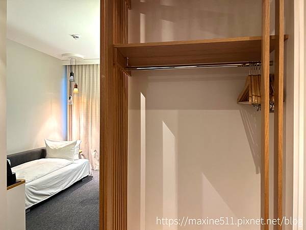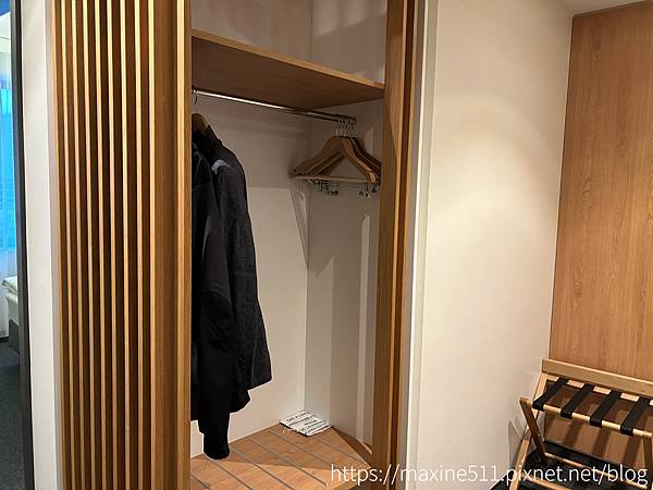進到房間後門口的空間非常大,給客人放行李,門的正前方有一個掛衣間。