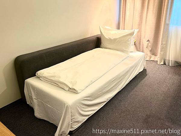 這裡的行政套房配置是一房一廳,但因為要住個三個人的關係,飯店就把客廳的沙發拿來鋪床。歐洲飯店比較多是這種做法,跟台灣或是日本不同 (直接加床或床墊)。