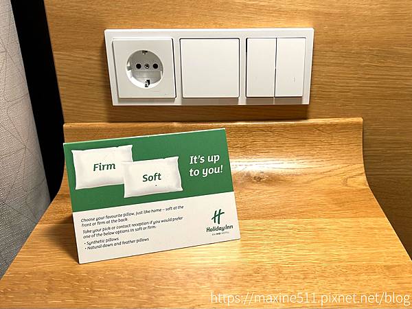 飯店還特別準備了小卡跟客人說有提供兩種枕頭