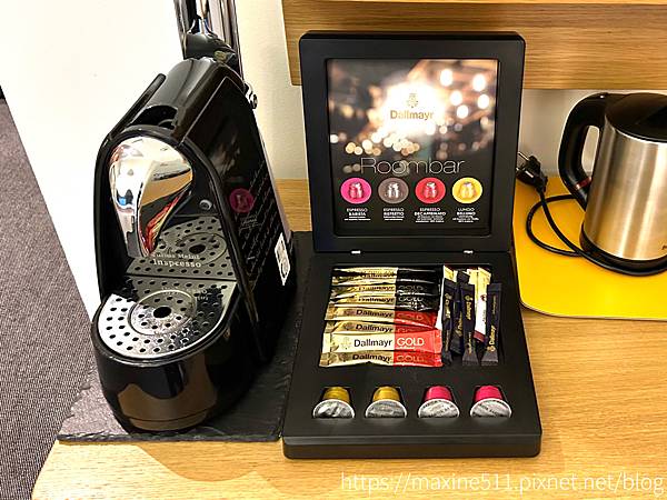 飯店另外有準備咖啡機,想喝拿鐵或卡布奇諾的可以用咖啡機。