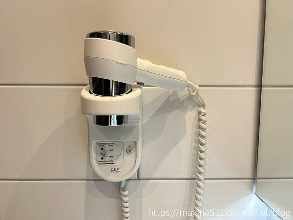 吹風機雖然是掛壁式吹風機但是保養蠻好的,風力夠強也不會有什麼燒焦味。主機下面還提供插座給男性客人使用電動刮鬍刀。