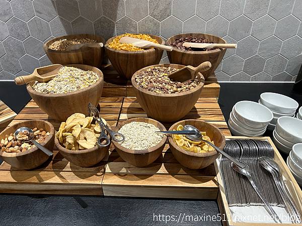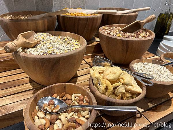 麥片區種類也很多,還有果乾跟堅果可以吃。