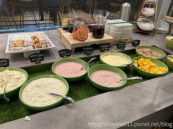 可鬆跟蛋糕的另外一邊是優格區,有好幾種口味的優格可以搭配旁邊的水果或是另外一邊的麥片。