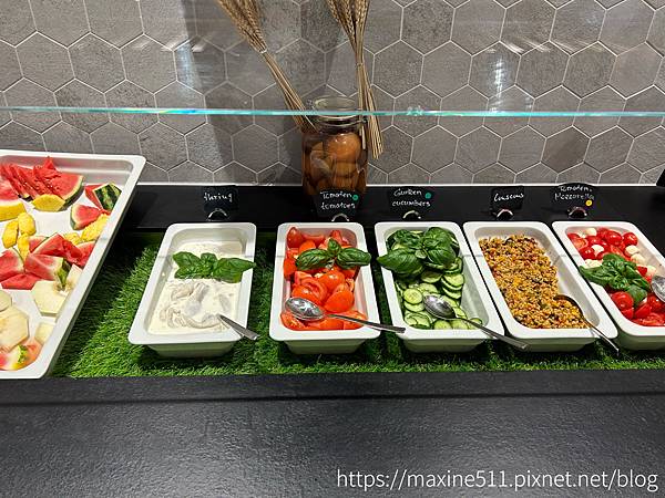在德國飯店吃早餐標配都是起司片跟火腿臘肉,蔬菜量會比較少一些,如果怕纖維不夠還是可以到超市另外買沙拉來吃。