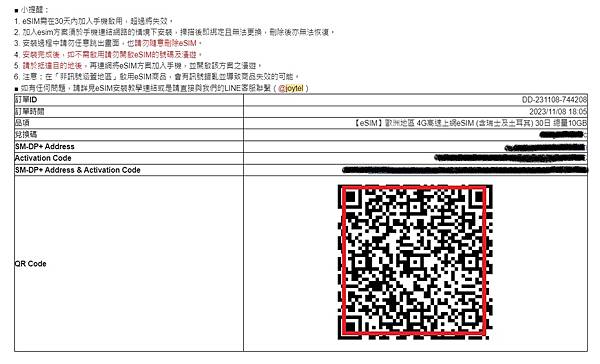 JOYTEL有提供真人LINE線上客服,所以如果有什麼使用前問題或是要安裝時有狀況都先連絡客服,請不要隨意刪除eSIM或是隨意開啟號碼或是漫遊,避免eSIM失效喔!