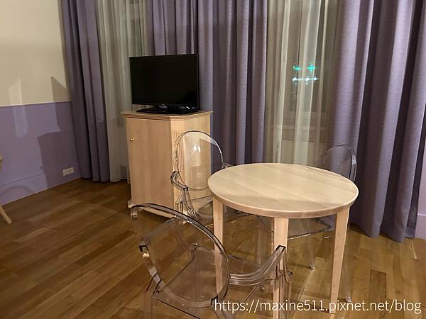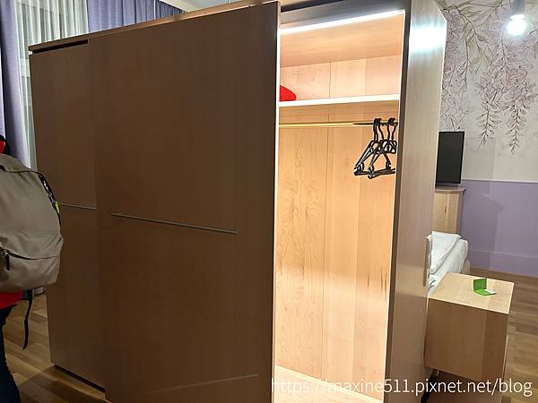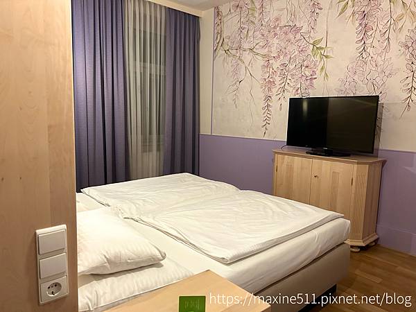 進到臥室處,正前方是一個衣櫥,衣櫥後方連著一個雙人床,另一邊則是沙發鋪成單人床。這間房間跟慕尼黑住的一樣有兩台電視,雖然我們都沒有用到,哈哈。