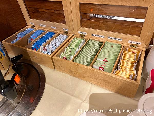 飲料部分有很多種茶包可以泡,還有柳橙汁。