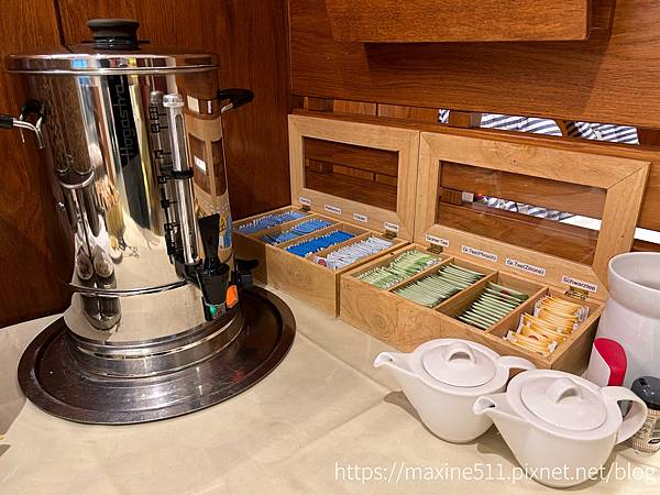 茶包區有一個很大的熱水壺,如果想要單純熱水的話,可以拿自己的保溫瓶來接水 (有詢問過工作人員),因為房間內沒有熱水壺。