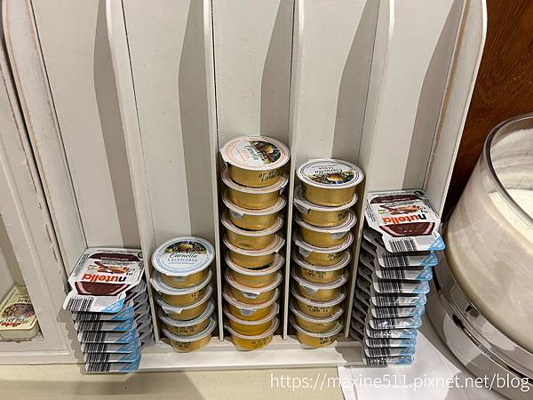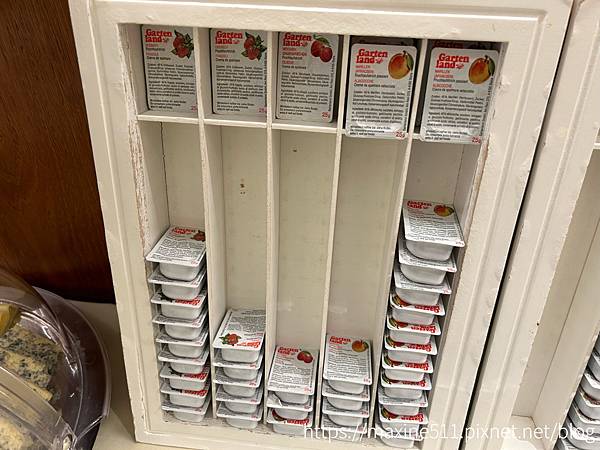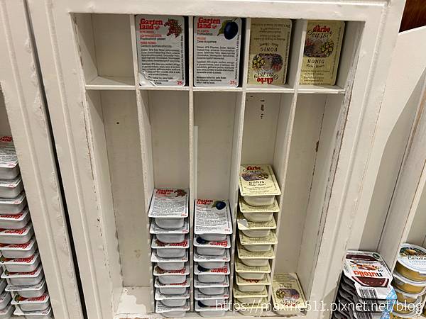 沒有看過這個牌子的果醬,但是我覺得很好吃。還有這種小塊的乳酪,這個也很好吃,另外還有巧克力醬跟牛肝醬,也是超級好吃。