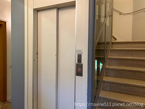 飯店有一個小電梯,最多可以容納三個人加三個行李箱,不用擔心要搬行李到房間。
