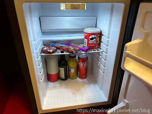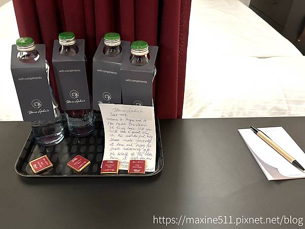 桌上還有迎賓巧克力跟水,冰箱裡的飲料可以免費享用。