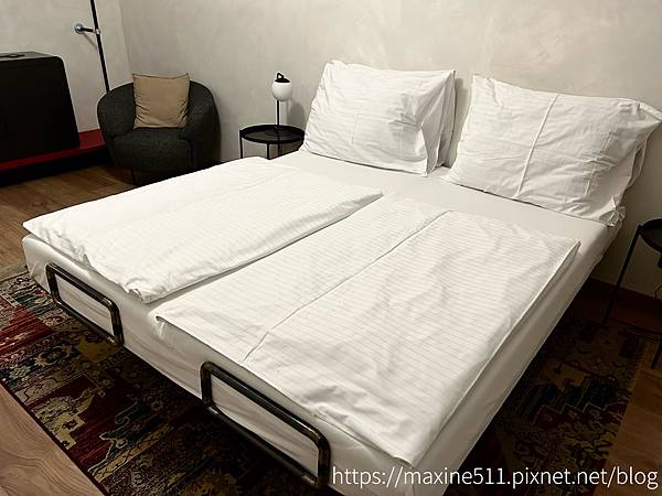 雙人床睡起來很舒服,而且他們提供兩個被子,超讚的!!! 床邊都有提供小燈跟小桌子可以放東西。