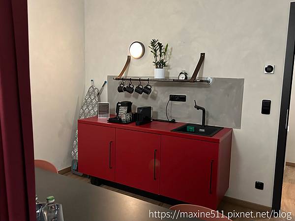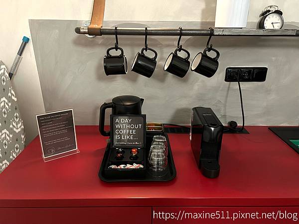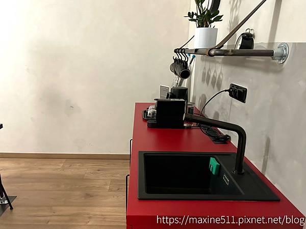 靠近門邊是流理台,左邊還有膠囊咖啡機跟茶包可以用,沒有想到設備還挺齊全的耶!