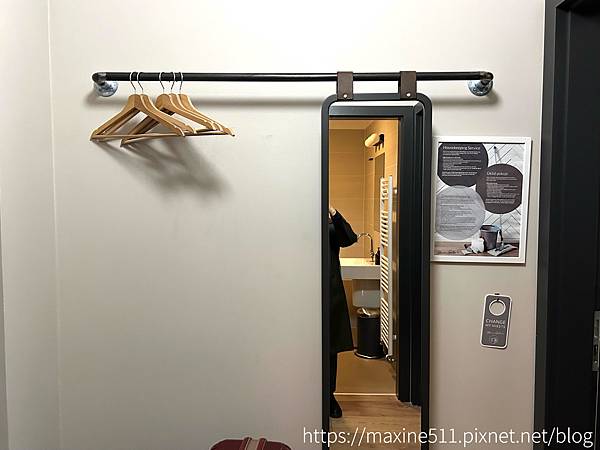 玄關有一個掛衣桿跟連身鏡,外套跟鞋子都放在這裡,回到房間就穿自己帶的室內拖鞋。
