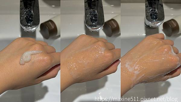 燕麥煥光奇肌磨砂膏的磨砂顆粒非常細緻,溫柔按摩就可以帶走老廢角質,所以不會破壞到肌膚屏障。按摩過程會稍微起一點泡泡,沖完水後肌膚是可以明顯感受到水潤平滑的效果!