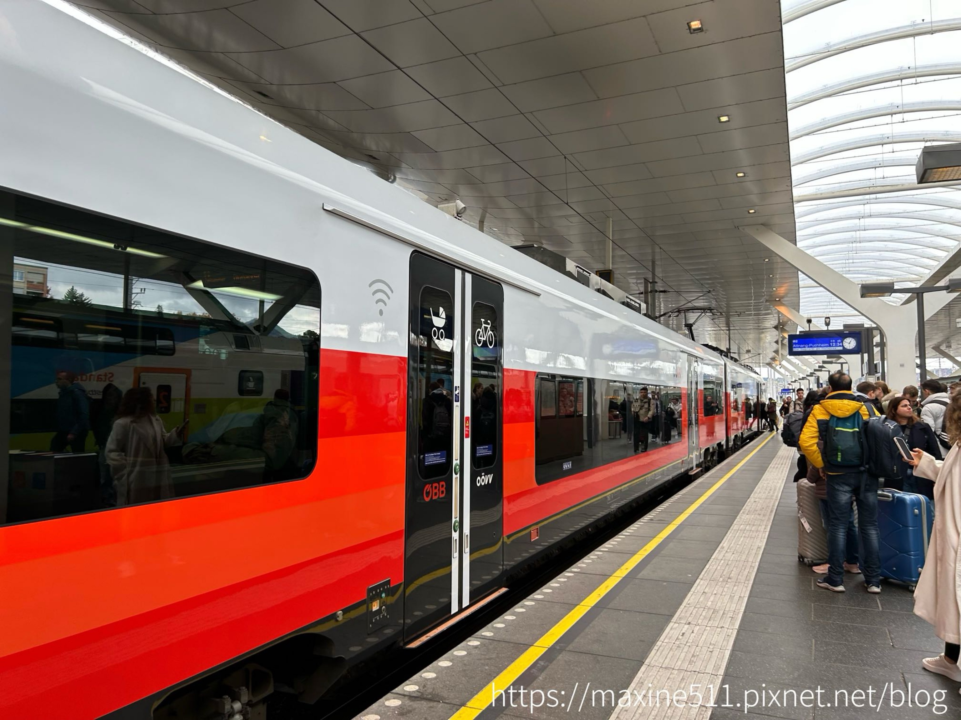 我們算有點壓線上車,可能因為是熱門路線,9:55後站務員還是有讓在趕車的旅客上車,而且一直大喊要關門了要關門了 (雖然沒有關),我覺得人不錯內。前往薩爾斯堡的路上,可以看到超美的風景,11月中旬已經可以看到山上的雪了,一路上還有草原跟小鎮風景。