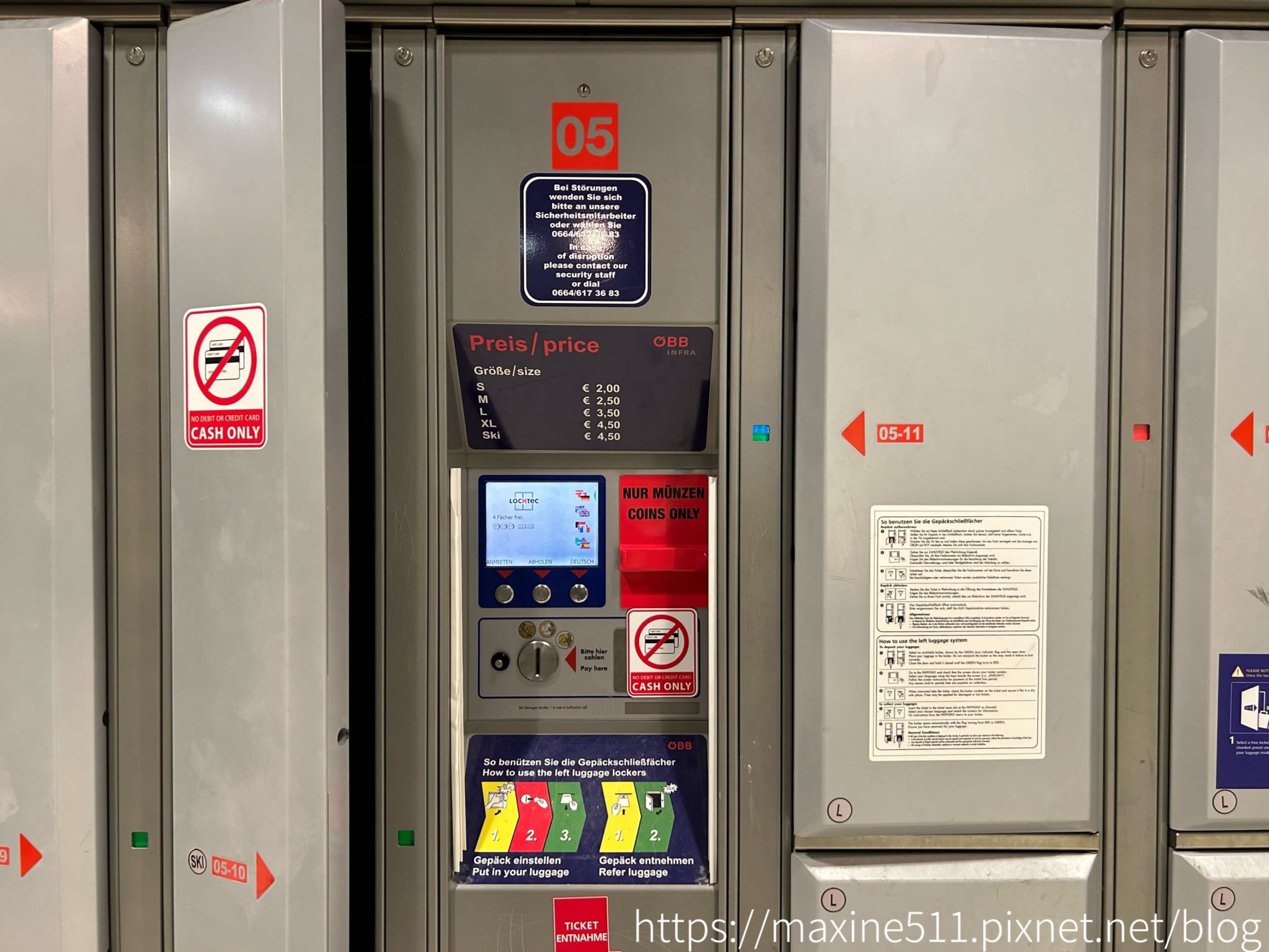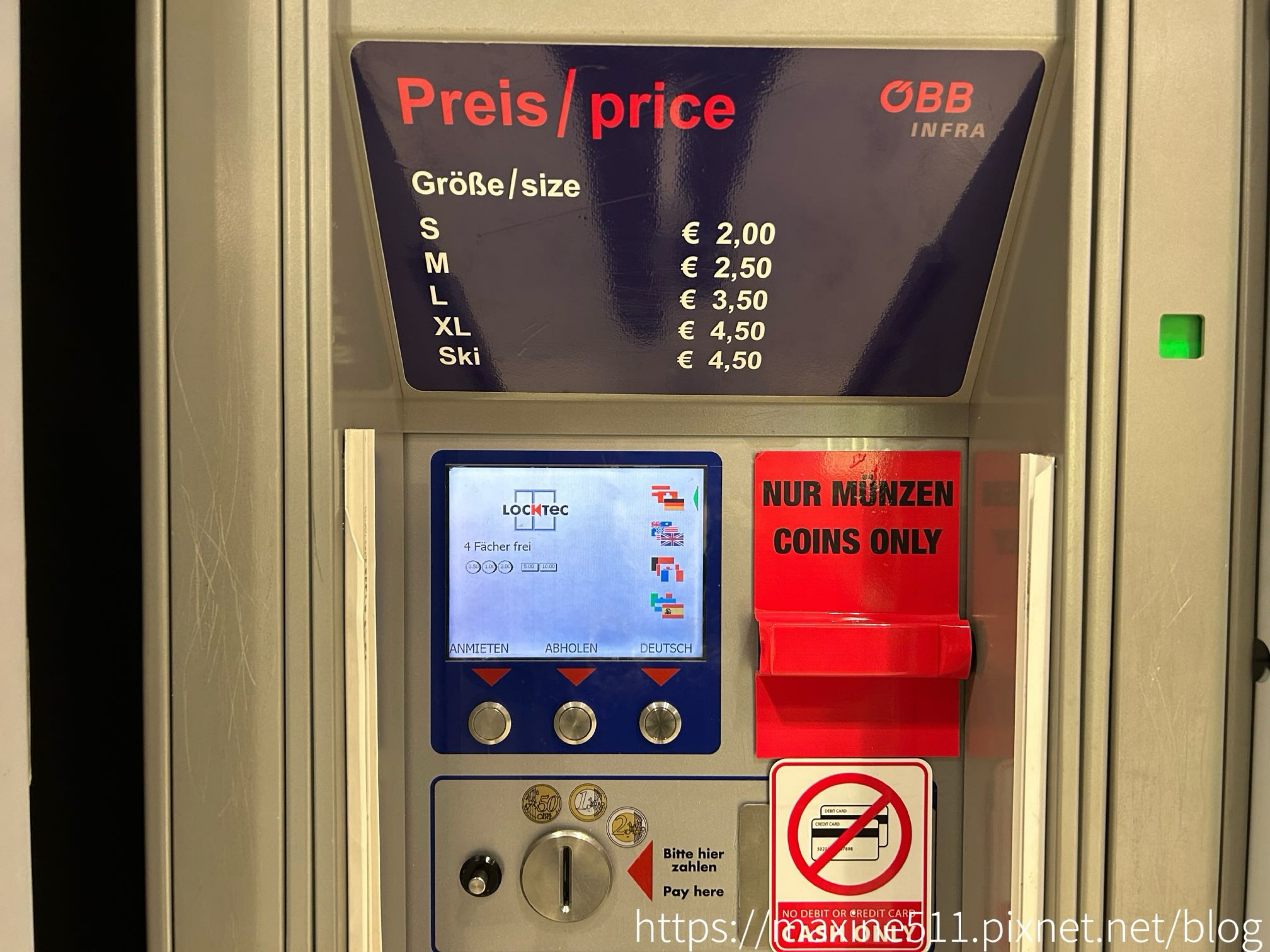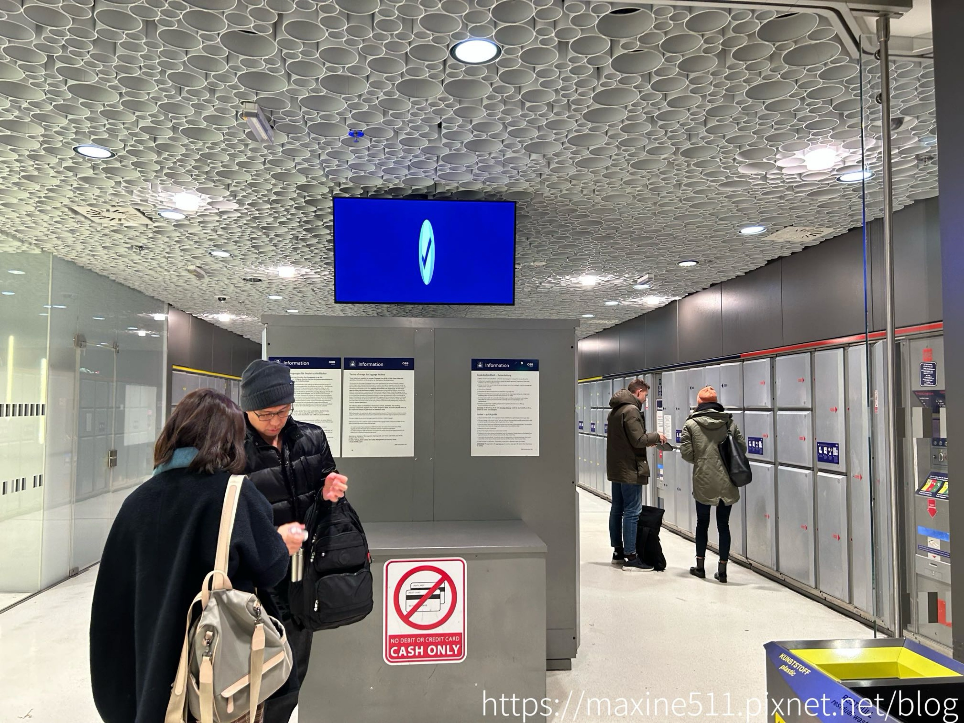 這裡的置物櫃可以放28吋大行李箱,也有滑雪板專用置物櫃,但是要注意只能投幣唷!
