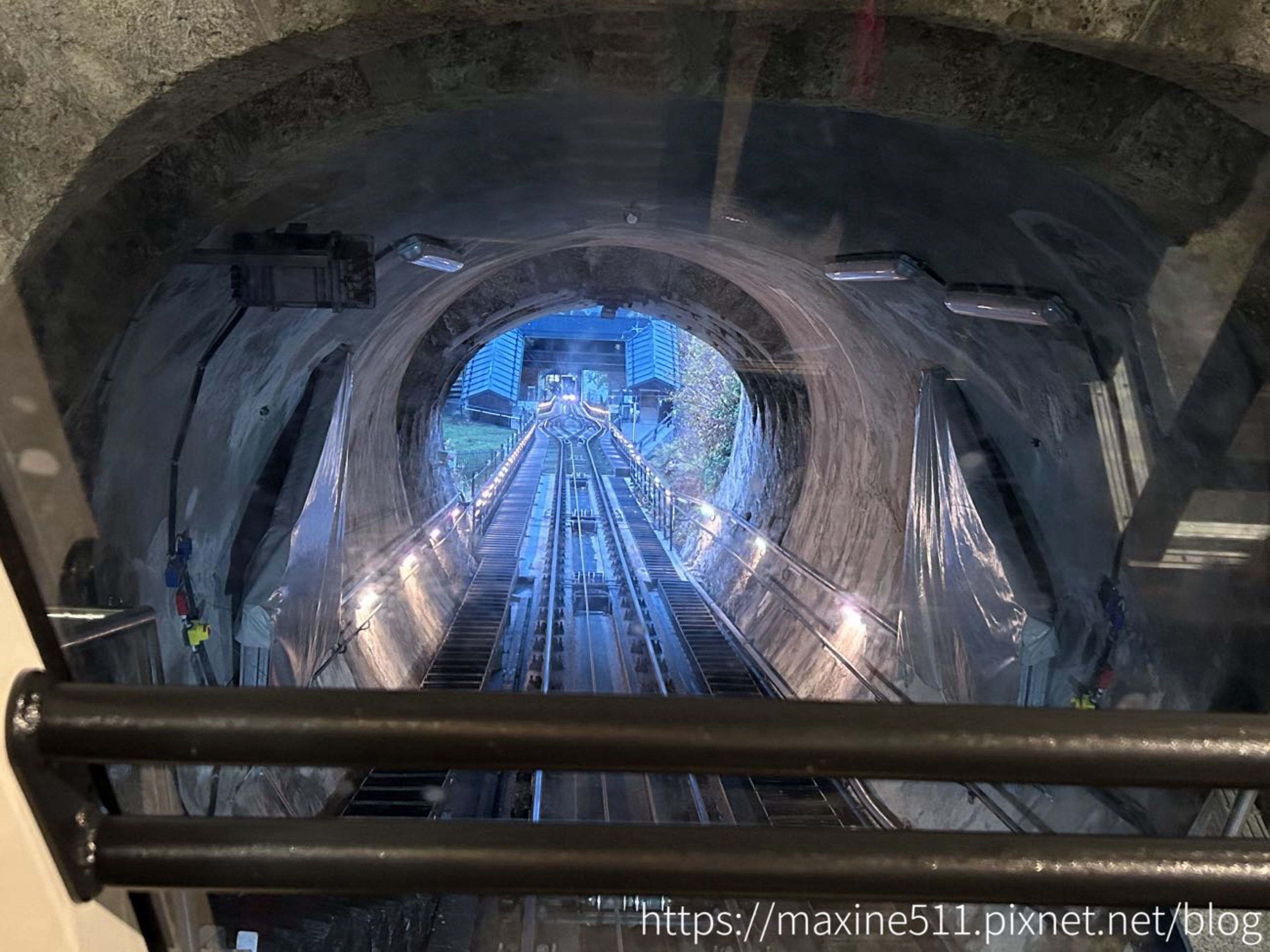 纜車空間其實很大,上坡時往下看覺得還好,但下坡的時候就覺得蠻陡的。