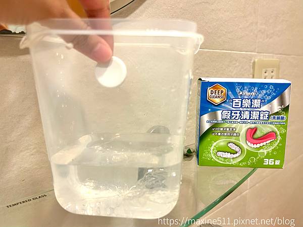 在裝有150ml溫水的容器中放入一錠,把維持器放入容器中(水要蓋過維持器)。清潔錠放到水裡面就會像發泡錠一樣融化。