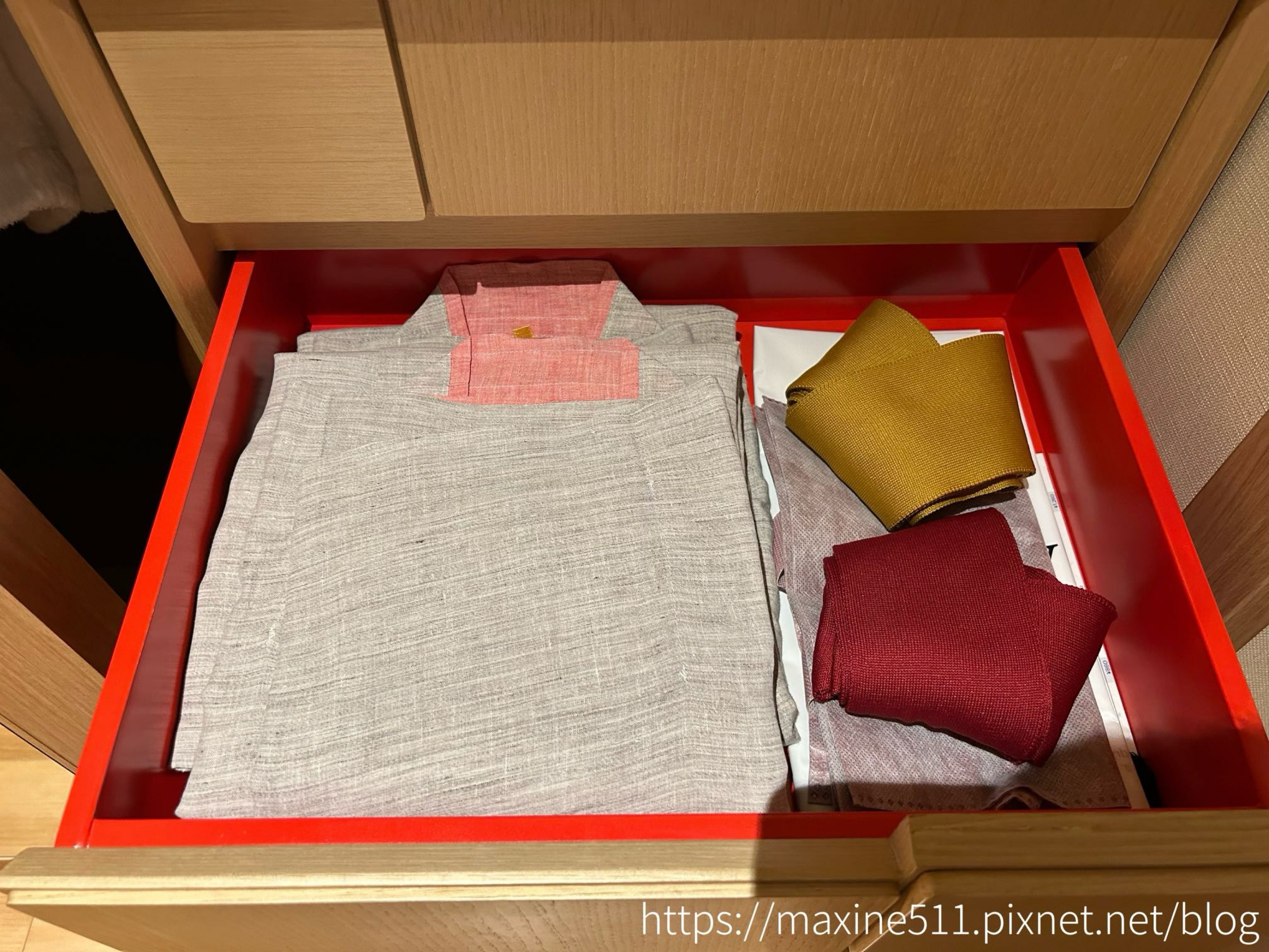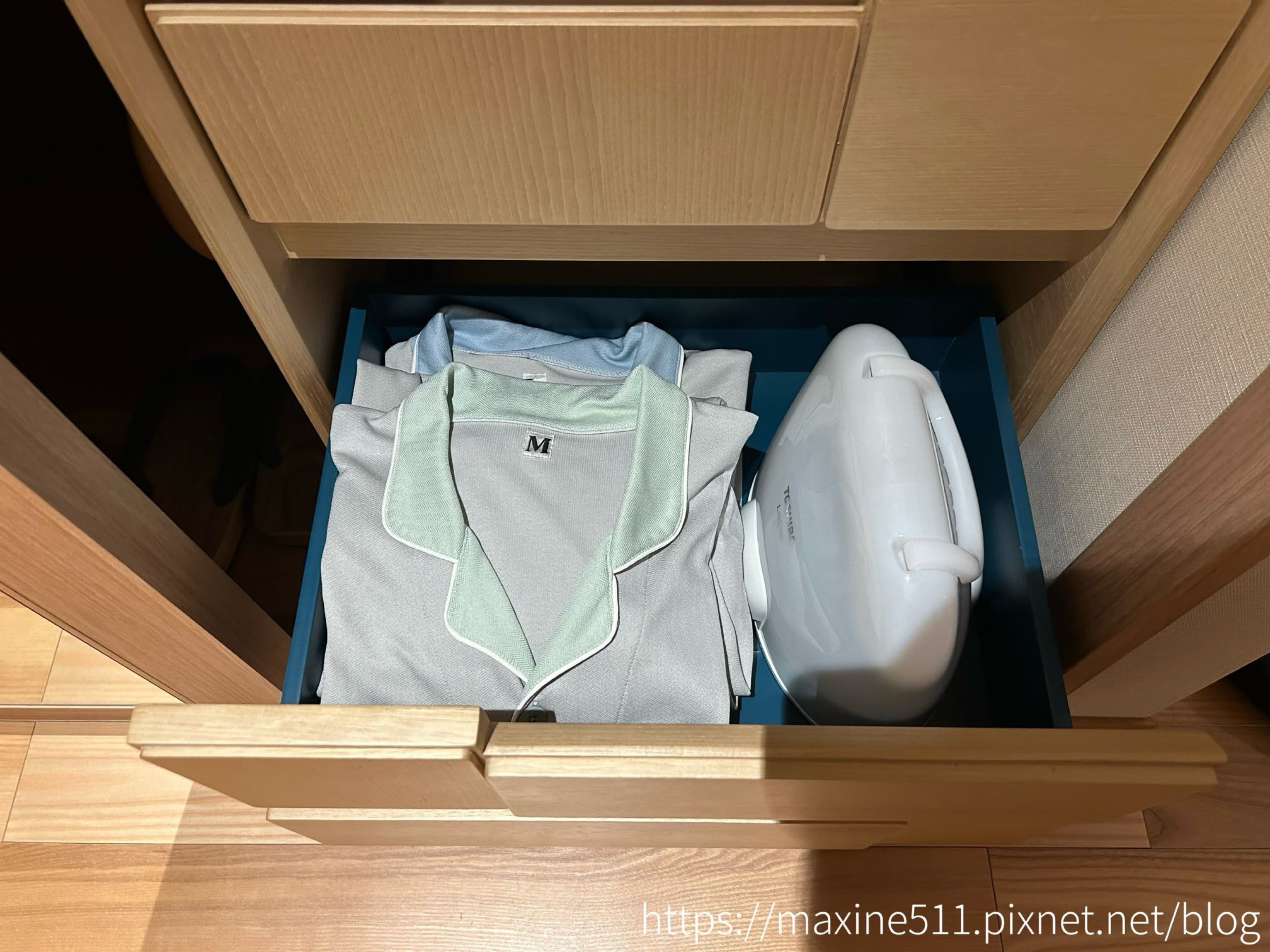 除此之外,飯店還提供了浴袍、浴衣跟睡衣,三種不一樣的衣服,真的好讚。