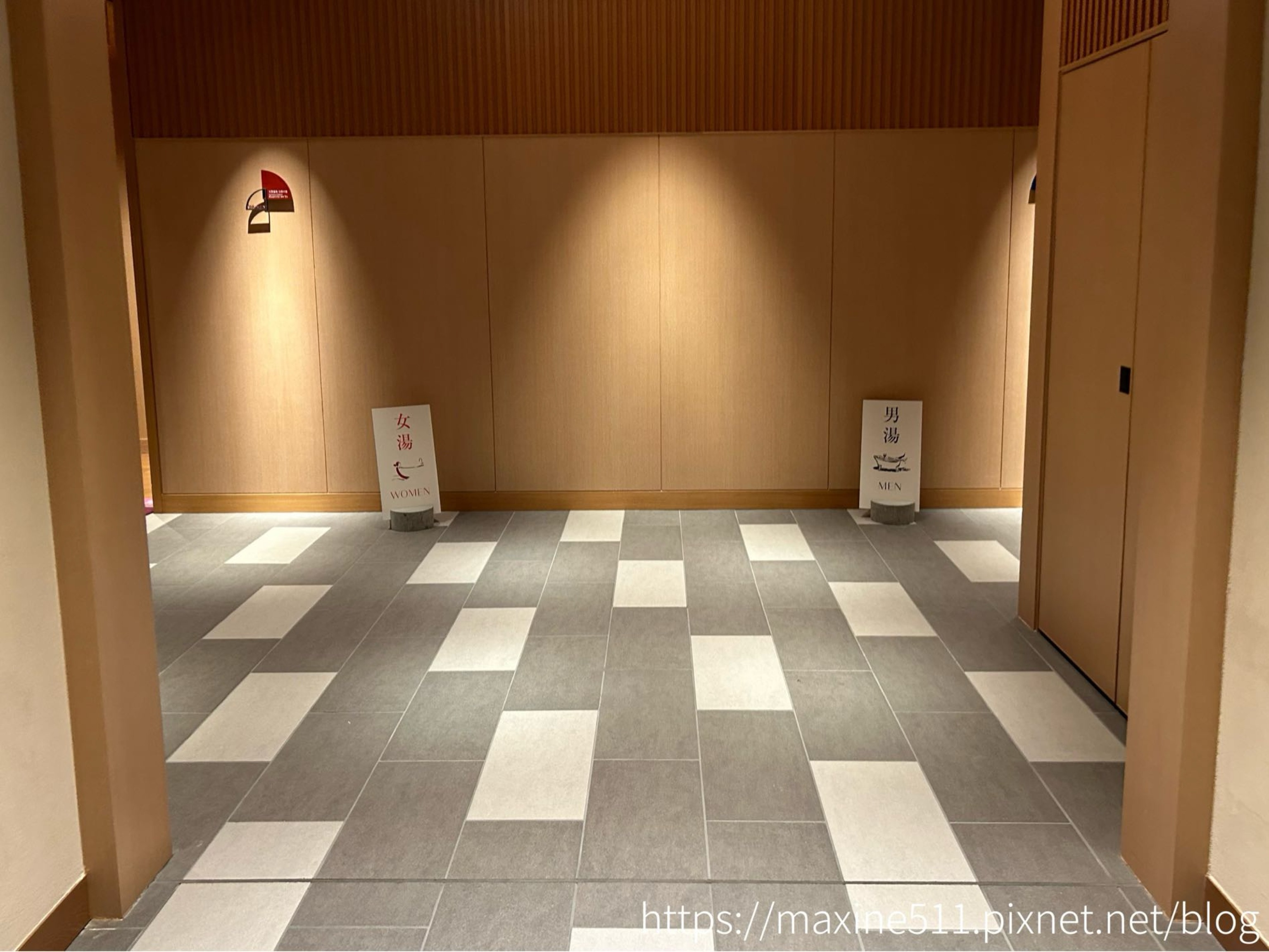 湯池的部分可以參考飯店介紹,入口處先放鞋子,(後面以文字敘述) 走進去之後再把其他東西放到更大的置物櫃。空間配置一半是置物櫃,另一半是吹頭髮跟保養的休息室。休息室區域還有提供飲用水、小包裝的盥洗用品。池子的部分室內有一冷一熱的池,一小區的盥洗區,室外部分則是一個熱水池。在室外泡溫泉真的好享受~大概泡了半小時左右,覺得身體暖暖的,剛好回房間補個眠。