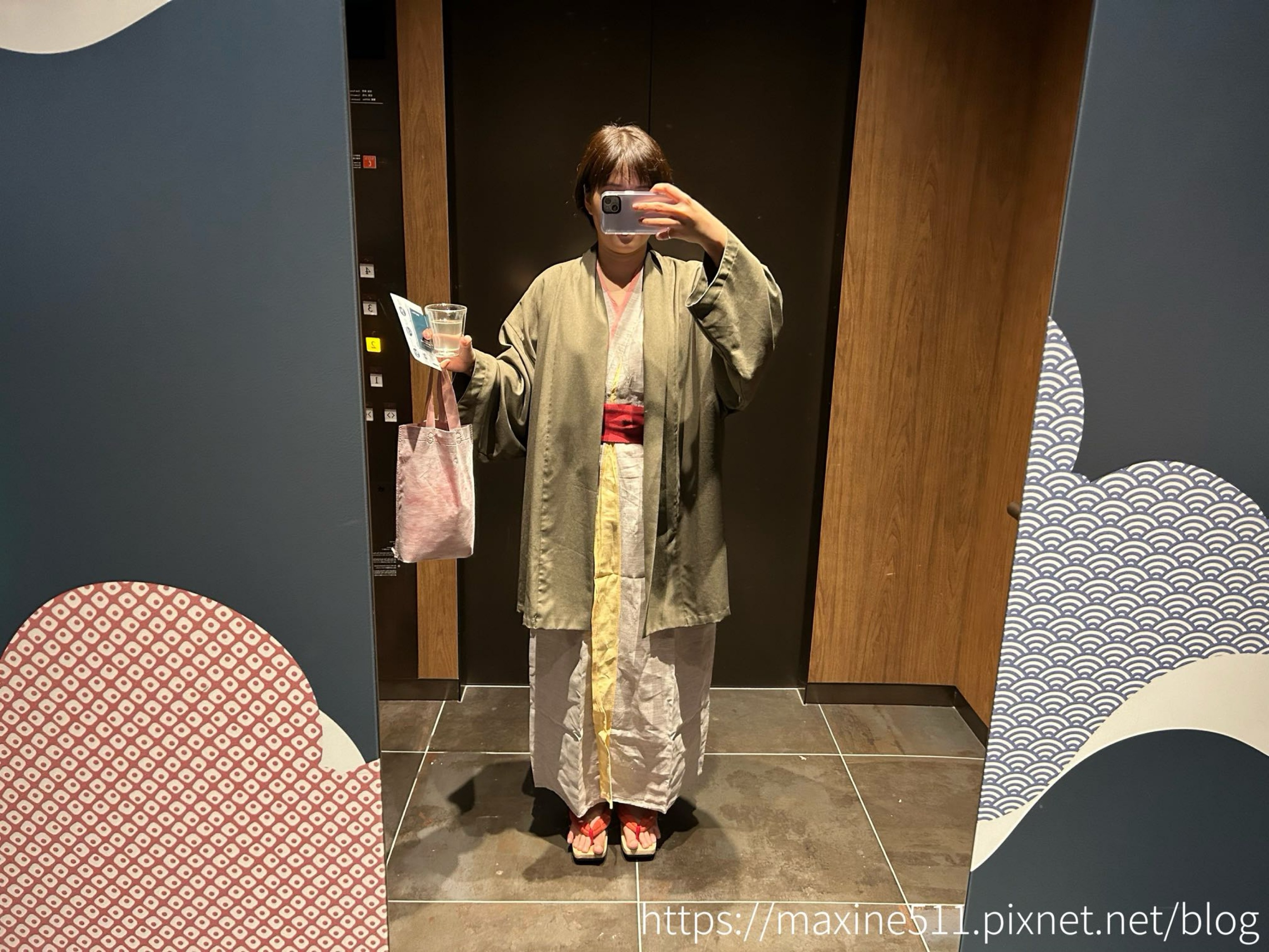 穿著飯店提供的浴衣跟木屐去泡溫泉~