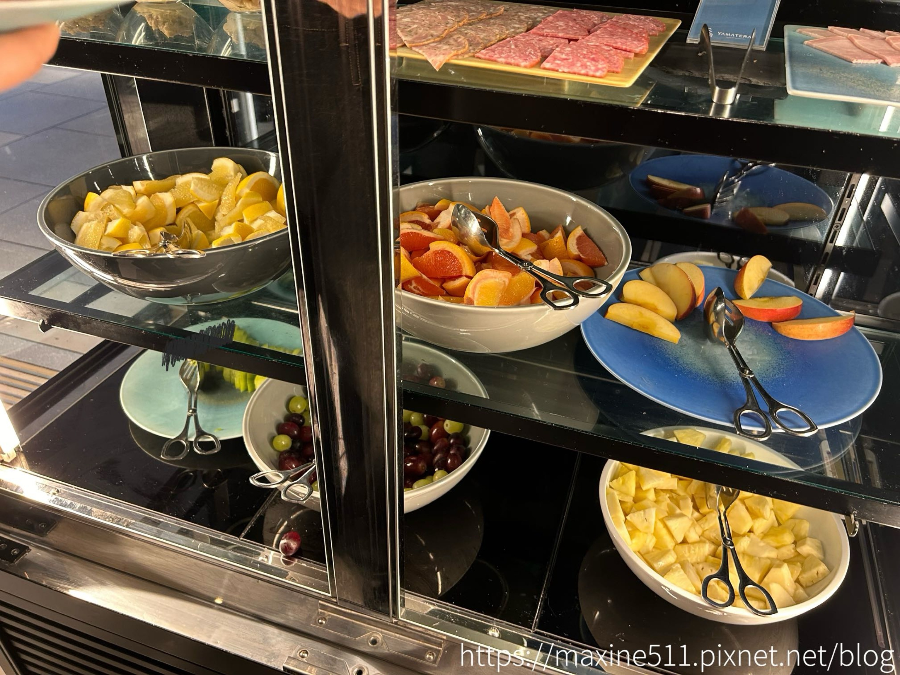 早餐主餐部分可以選日式或西式,其他就可以到自助吧夾,有冷盤、沙拉、水果、麵包、飲料、牛奶、優格等等。
