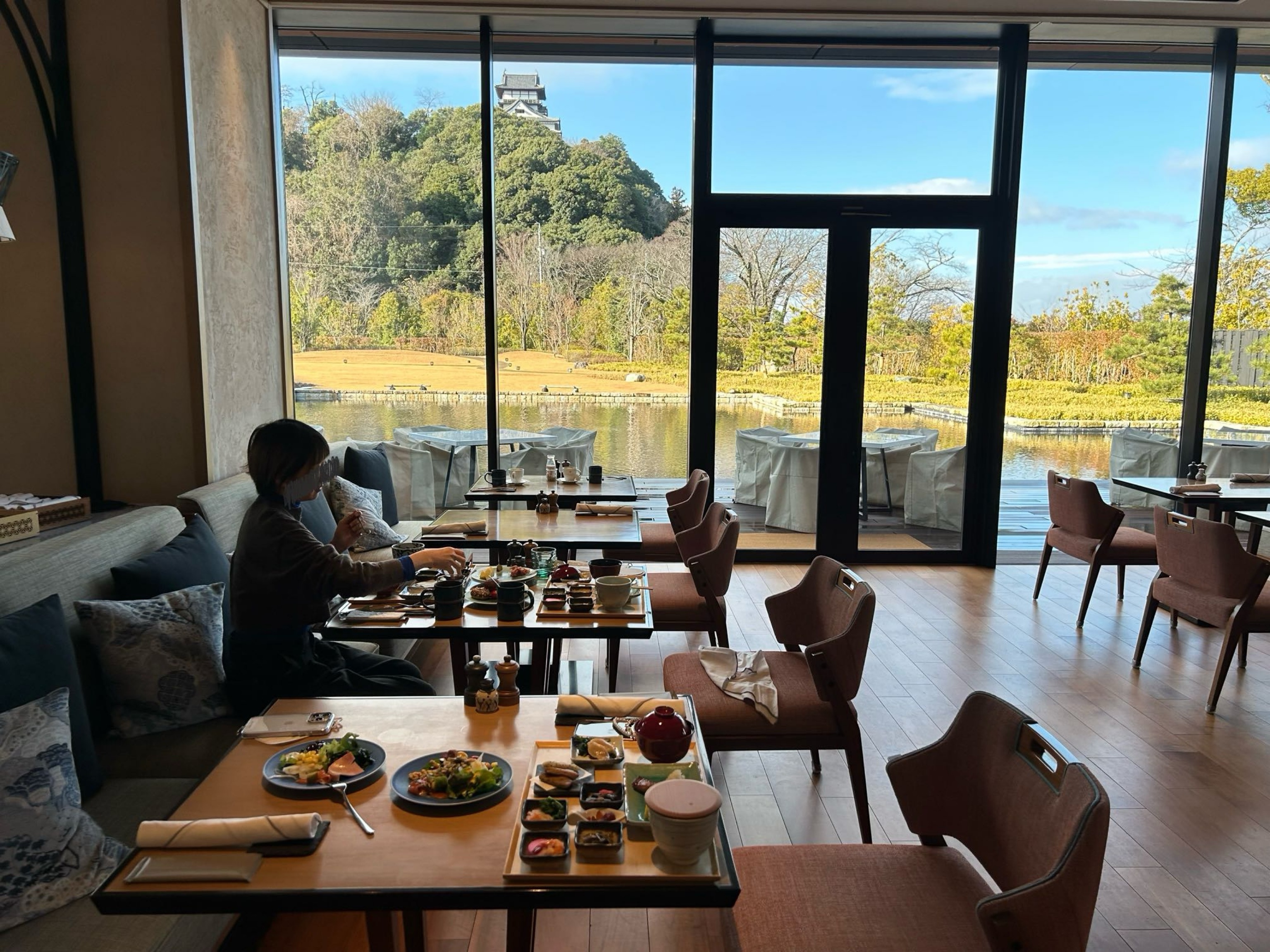 用餐區也是大片玻璃,可以邊吃早餐邊欣賞犬山城,今天的天氣超好的!!