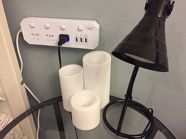 插座的before & after,因為插座上的藍色燈光晚上睡覺的時候我覺得會影響睡眠,所以就先用OK蹦貼起來。