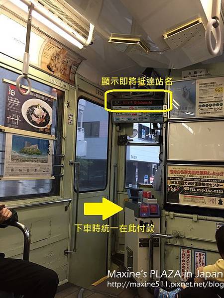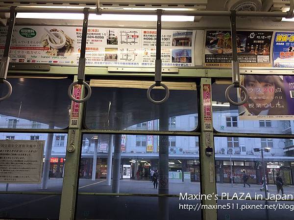 車上跟捷運一樣都有很多廣告文宣,搭車的時候可以研究一下打發時間,很多都是熊本美食店或是娛樂場所的廣告/介紹。